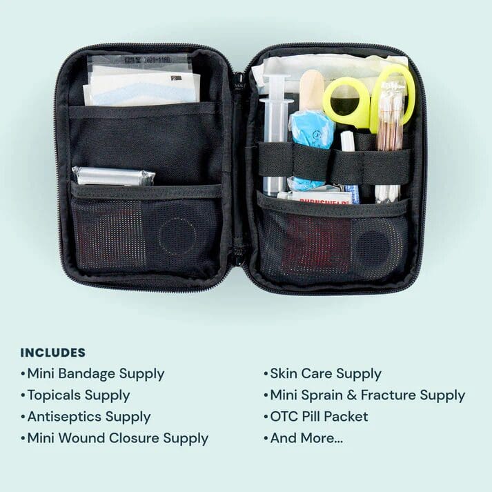 It’s the only first aid kit that includes real medications, not just bandages — giving you true readiness whether you’re at home, on the road, or in the field. Each kit is organized for fast access to essential care: bandages, antiseptics, wound closures, skin and sprain supplies, and OTC pill packets.